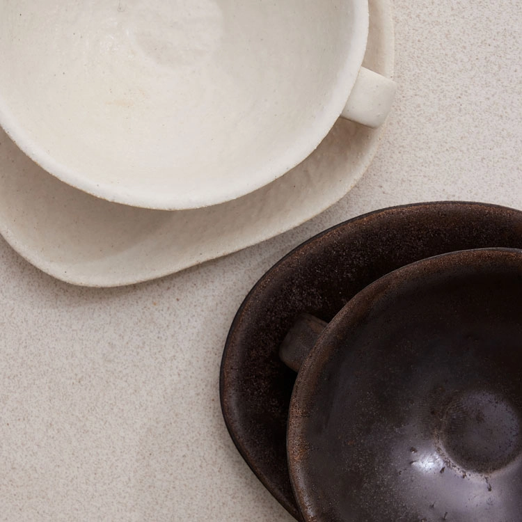 consists of dessert serveware organically and fluidly designed under the unifying theme of stone.